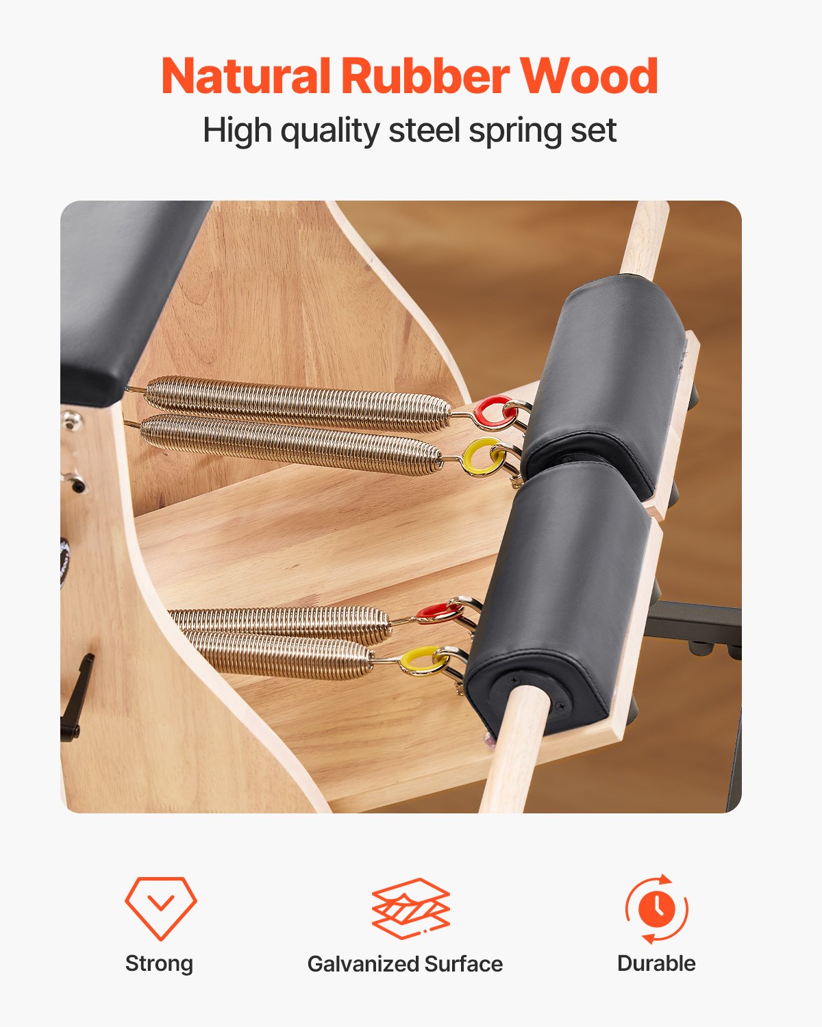 This pilates chair exercise equipment is suitable for home gyms or professional yoga studios. It helps improve muscle strength, core shaping, posture, and body sculpting