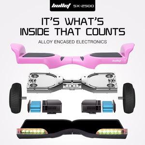 BULLET SX-2500 Hoverboard Scooter, 500W Brushless, UL Certified, AU Compliant, 6.5-inch Off-Road Style Tyres, Superior Self Balancing System, LED Lights, Pink