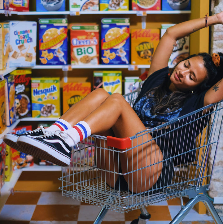 Inspired by suburban culture of skateboarding in the early 70's, striped Ankle High socks are the upgraded reincarnation of the classics.