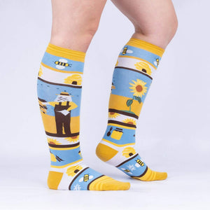 Did you know that almost a 1/3 of our food supply relies on bees for pollination? Let's celebrate the urban beekeepers, the hobbyists, and the apiarists alike - all of whom work with intelligent honeybees. These knee highs are perfect garden fashion.