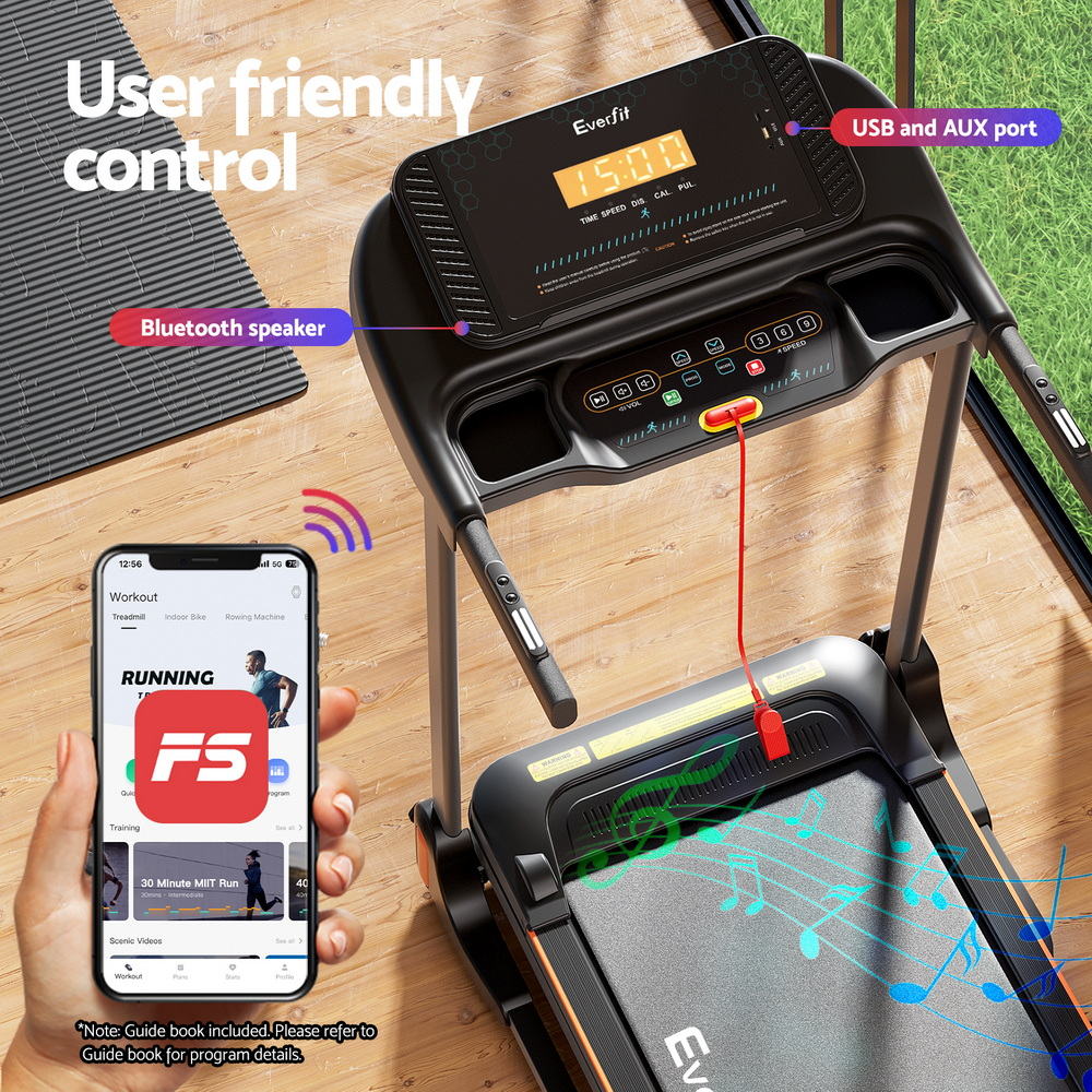 Transform your living space into a year-round fitness sanctuary with Everfit's foldable treadmill. Designed for Aussie homes, this clever machine folds vertically with a smooth hydraulic motion - tucking neatly against walls or into corners when not sweating it out. The cushioned running belt cradles your joints during intense hill simulations or casual strolls, while twin speakers and USB connectivity let you pump through podcasts or playlists.
