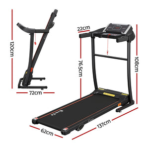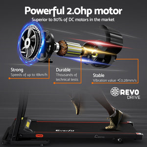 For a truly effective approach to weight loss and toning, our Everfit Electric Treadmill is your perfect companion. Compact and sturdy with its powder-coated steel frame, the treadmill allows you to perform essential cardio exercises within the comfort of your home. It features 12 pre-set training programs designed to simulate natural terrain. A user-centric control panel with a digital LCD display lets you set up to speeds between 1km/h and 12km/h and other monitoring parameters. Its powerful motor produces smooth and seamless operation and the anti-slip belt and soft-grip handlebar with pulse sensors make your session a comfortable and controlled experience. Other great features include a 3-level manual inclination adjustment, safety tether key, foldable design for easy folding and storage, and smooth wheels for easy mobility. Not least, the treadmill is also equipped with MP3 connection, speaker output and dual drink holders to keep you both entertained and hydrated. For health results that matter, our Everfit Electric Treadmill is the one to run to. Get yours today.