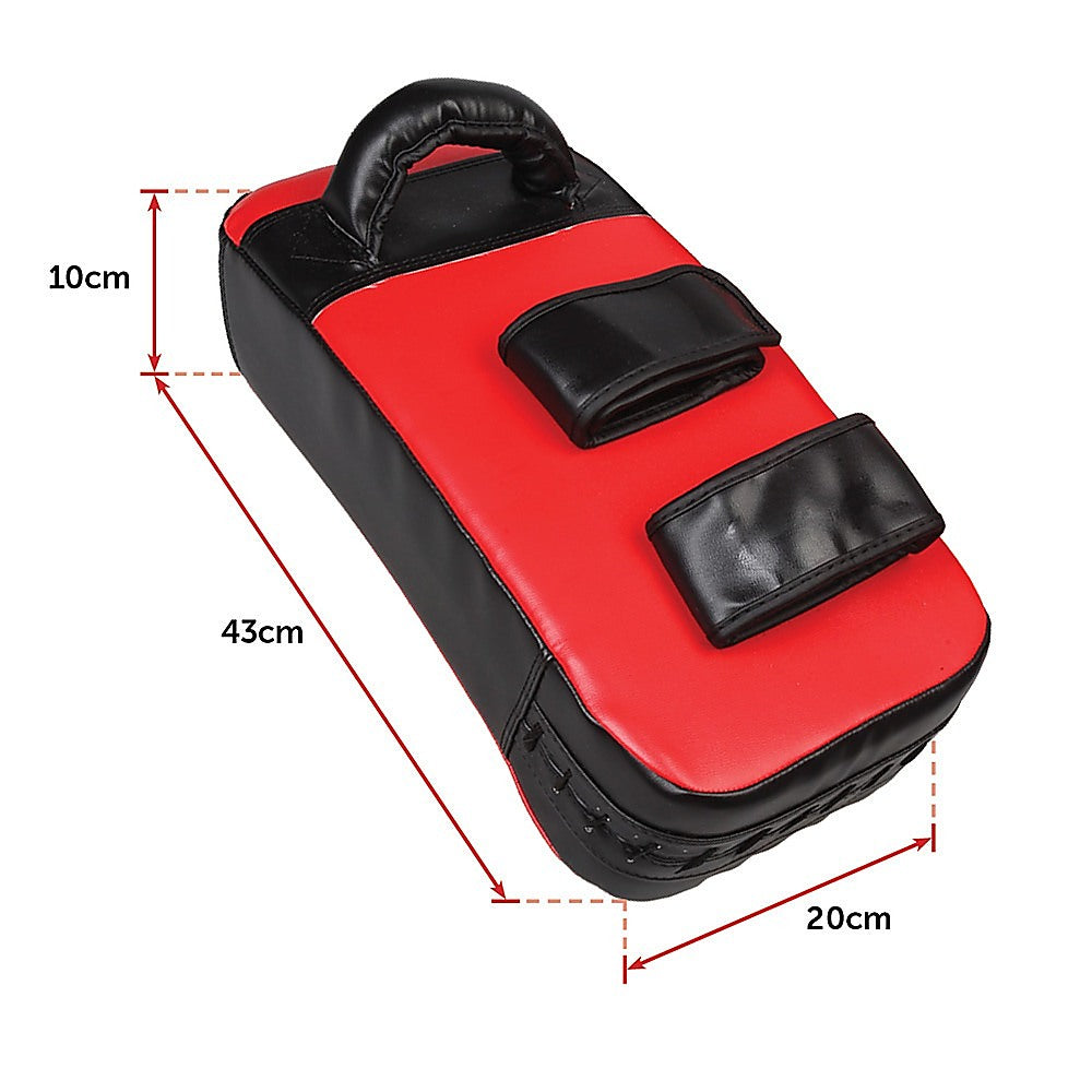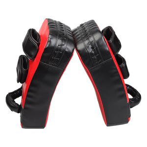 The pads are strapped to each forearm. When you face your exercise opponent and kick and punch your way through the routine, you'll both enjoy a great workout. Your partner will benefit from the workout just by merely holding the Thai pads against the onslaught. The pads are designed with a curve that gives both the holder and the kicker the benefit of an intensified workout.