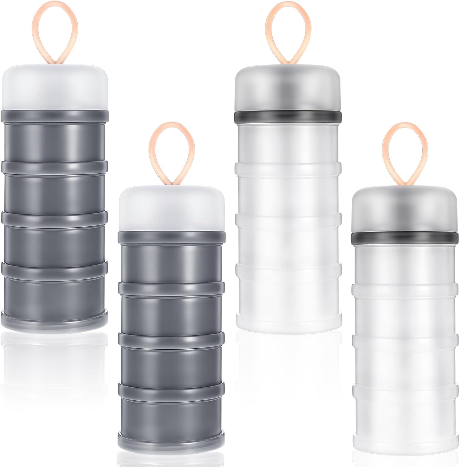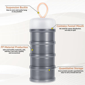 4PCS Protein Powder Container with Funnels Stand, 4 Stackable Non-Spill Protein Powder Dispenser On the Go Portable Leakproof Snack Storage Container for Travel Workout Fitness (Gray + White)