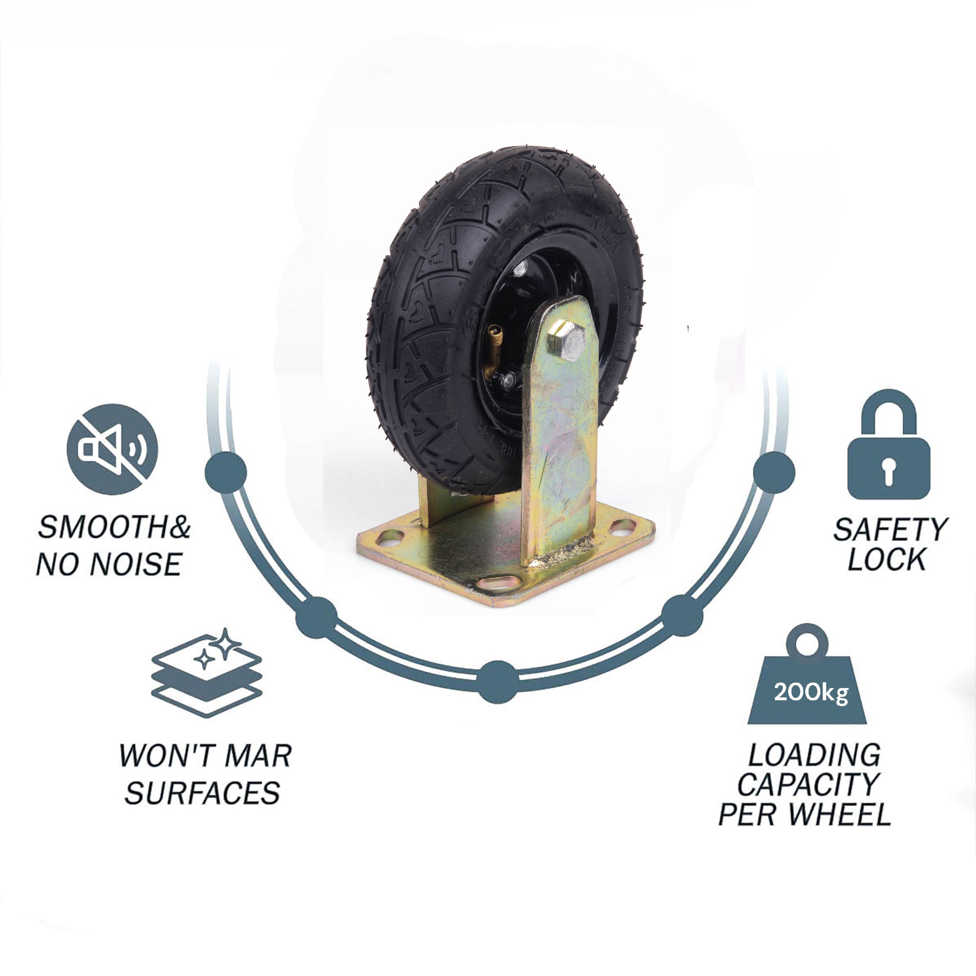 Fraud Blocker 6 Inch Fixed Castor Caster Pneumatic Tyres Tyre Wheel Trolley Cart Whe - SportsPlus