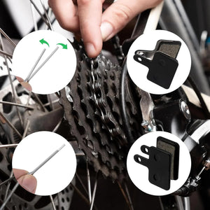 【Easy to Install】Please remove the front and rear wheels before installation. Remove the used brake pads from the front and rear calipers. Inspect the pistons and perform an overall caliper condition check first. Before installing new disc brake pads, check the quality of the brake cable or hydraulic hose. Use a flat tool to push back the pistons in preparation for installing new brake pads.