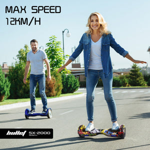 Level up your ride with the Bullet SX-2000 Hoverboard - a fusion of cutting-edge engineering and bold design. Featuring dual 250W brushless motors housed in durable aluminium mounts, it delivers smooth power and highly responsive control, perfect for cruising through parks or rolling around the block.