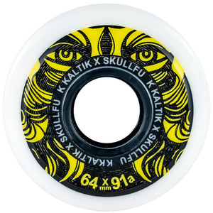 Kaltik x S F 64mm Wheels. The team at Kaltik joined up with S. F Brand from Scotland to bring you this new wheel, the x S F wheel. This time it’s a 64mm 91a with a tapered bullet profile and double-sided graphic.