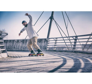 Urban adventures on 3 wheels: The Powerslide Kaze Supercruiser 110 urban inline skate. The super low Trinity mounting enables you to roll on 3 big wheels without losing control or balance. The reinforced shell & the stiff 243mm Triskate frame provide plenty of support for all freestyle tricks. Once having tried the comfy Recall Fit padding, there is no going back. Long lasting 110mm UC wheels & fast Wicked bearings crown this stunning commuter freeskate!