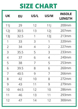 Black/Silver: UK: 6A – 12A / EU: 39 - 47 |