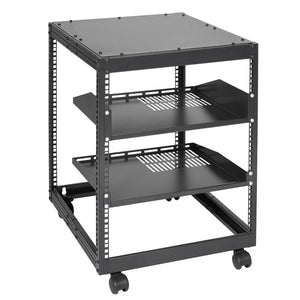 Ergonomic design makes the open frame av rack easier to use. The additional top panel is able to place other items with more available space. Roller design moves anywhere and anytime, is convenient, and is more energy-saving.