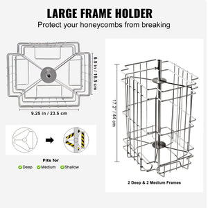 With a capacity to hold up to 2 deep frames and 2 medium or shallow frames, this extractor is the perfect addition to your kitchen or basement. Adapted Honeycomb Size: Deep: 18.9'' x 9'' / 48 x 23 cm and Medium: 18.9'' x 6.3'' / 48 x 16 cm. It's time to enjoy the sweetest harvest of your life with our honey extractor equipment!
