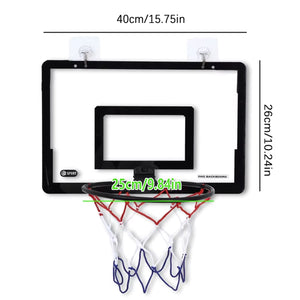 Dimensions: 40cm x 26cm (15.75in x 10.24in) for the backboard, 25cm (9.84in) for the hoop.