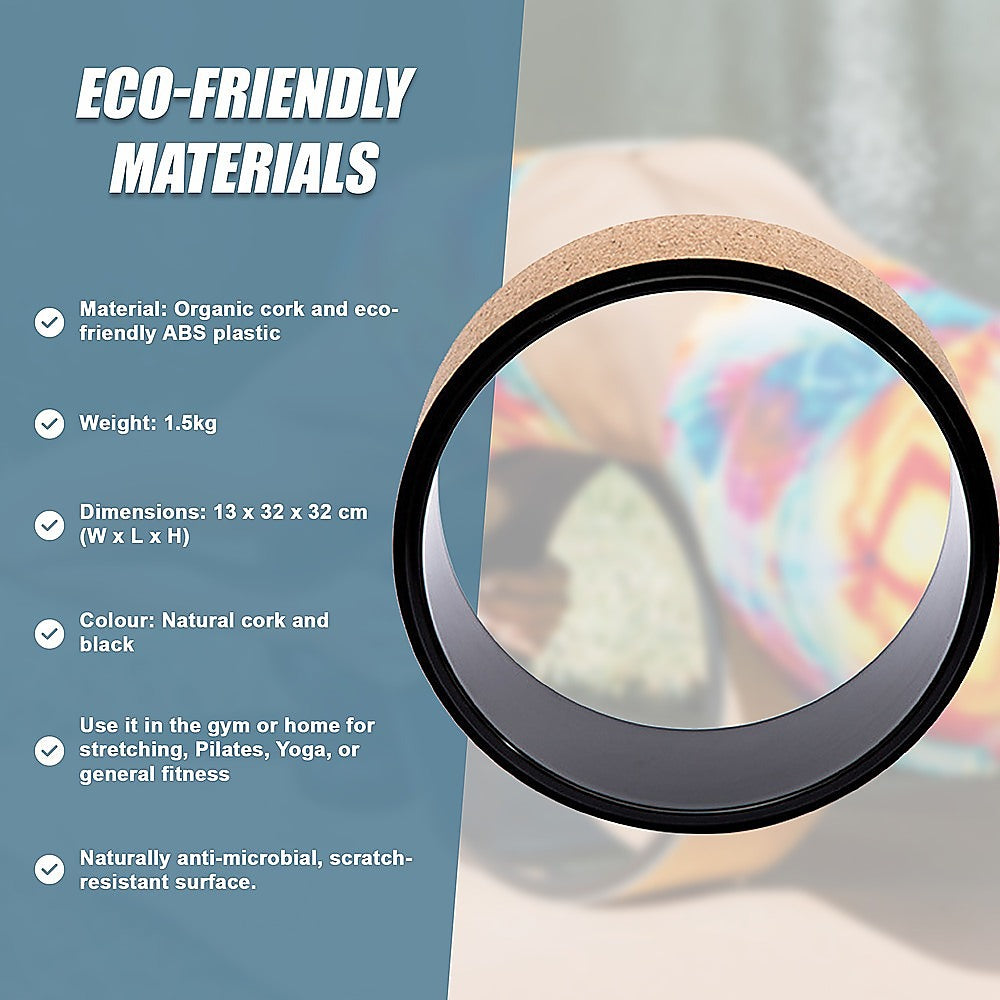 Yoga Pilates Wheel Cork Circle Prop Back Chest Hips Abdomen Stretch Roller